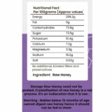 - It’s a raw, unfiltered, unprocessed and unpasteurized 100% Pure & Natural honey direct from forests. No added preservatives, No added artificial colours and No added sugars